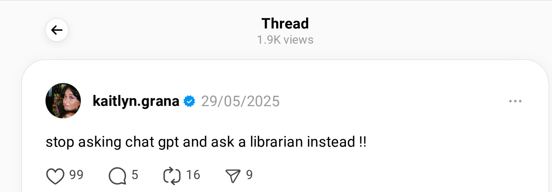 stop asking chat gpt and a librarian instead! www.threads.com/@kaitlyn….